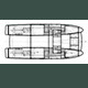 En los interiores hay un enorme y espacioso salón / cocina / puesto de gobierno con una excelente visibilidad, una fantástica zona para comer con la familia y para uso de charter. Debajo de la cubierta hay dos tipos de disposiciones, la versión de 4 cabinas con dos baños o 3 cabinas, una de ellas una enorme cabina del Armador con su baño y 2 cabinas de invitados con su baño. Las dos opciones disponen de multitud de armarios y zonas de estiba combinadas con mucha luminosidad y ventilación gracias a las ventanas y portillos del casco.